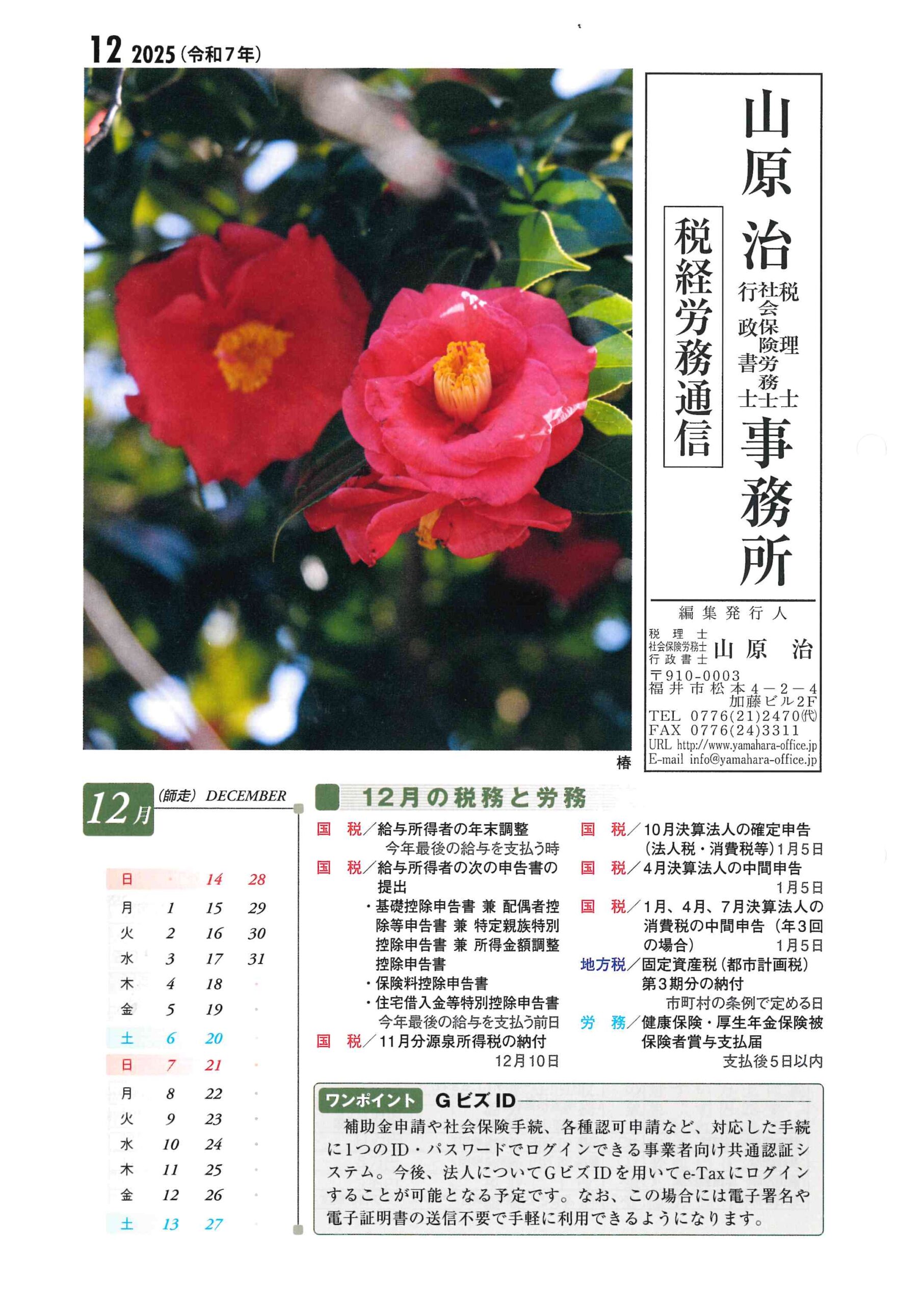 今月は年末調整や大掃除など何かとお忙しい時期だと思います。